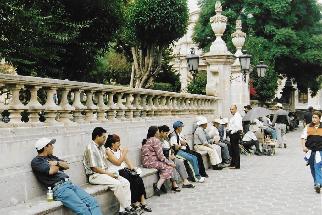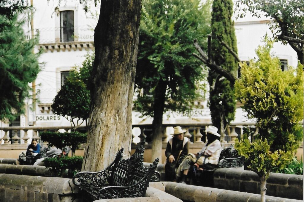 All Mexican towns had a Plaza Independiencia and contained within Zacactecas’s was a small botanical garden. In the small lanes of the garden were a series of green painted, wrought iron benches. Here I was to witness what, after a few cities, felt like a typical Mexican scene: two men maybe in their seventies sat on a bench, exchanging a few words, maybe counting beads, their sombreros sheltering them from the mid-day sun, both of them whiling away the afternoon. Sat next to them on the same bench, a young couple of lovers engaged in a very passionate, prolonged snogging session – two sets of people on the same bench, seemingly oblivious to the other’s presence. I’d carry on past, go for a bite to eat, cut back across the park half an hour later, and they would still be at it – still snogging, still counting beads.