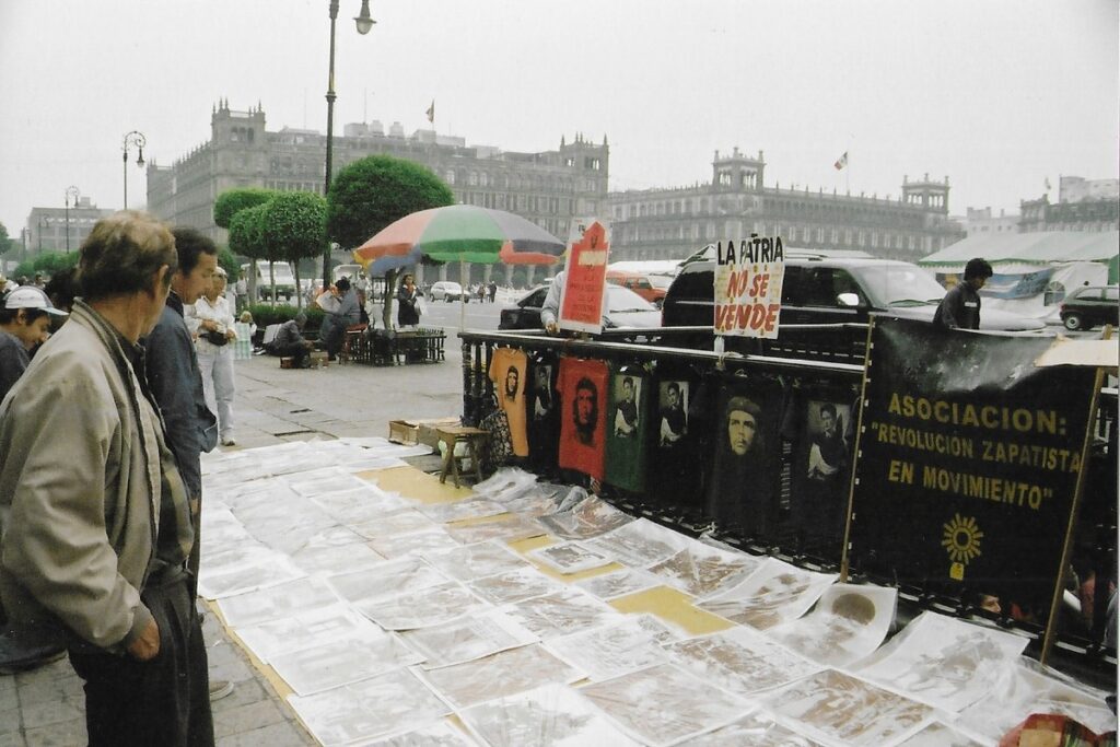 A different protest was held on each of the five evenings that I wandered over to observe (tonight, as I jot these notes it’s the turn of the Confederación de Trabajadores de México – Confederation of Mexican Workers; last night it was a campaign for the release of Mexican political prisoners); hundreds of people with banners, stopping passers by to sign petitions, vans with loud speakers addressing the crowd in front of the arches. Freedom of speech might have mushroomed since the last Mexican dictatorship. But, at both ends of the Adjuntament, on horseback and sat in vans, the riot police lay in wait. It was all very good-natured. But of course the riot police would not stand for any real nonsense. I had no doubt that a fair few would have experience of quelling serious dissent ruthlessly and in quite an effective manner, and had served under previous Mexican dictatorships.