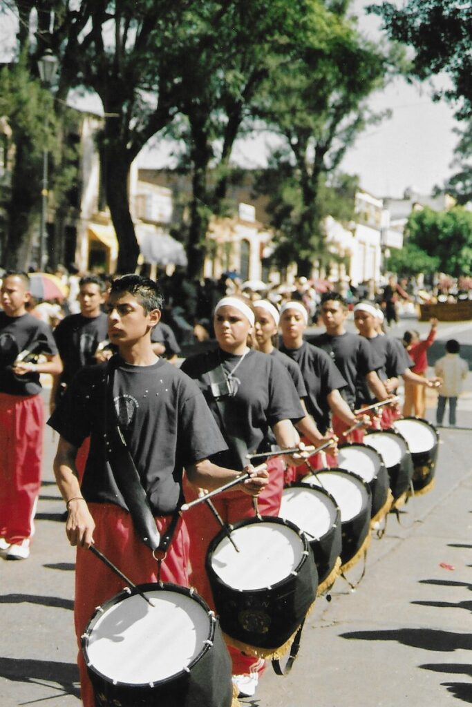 I made my way down to the bottom end of Avenue Mader-Poiente. Down several side streets were the drumming clubs. They stood in line and carried on drumming. I watched one crew for fifteen minutes, until their Master of Ceremonies shouted, ‘Drummers dismissed’ or something like that. They all turned to their right, stamped their feet once, and then made their way to a large MexDonalds (as it was called), in the next street.