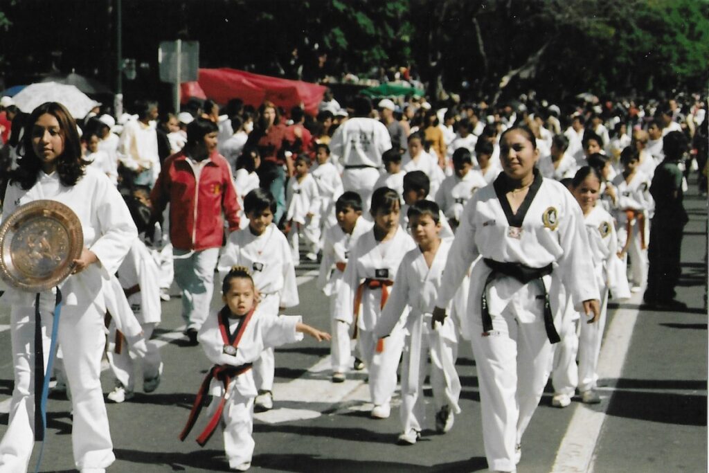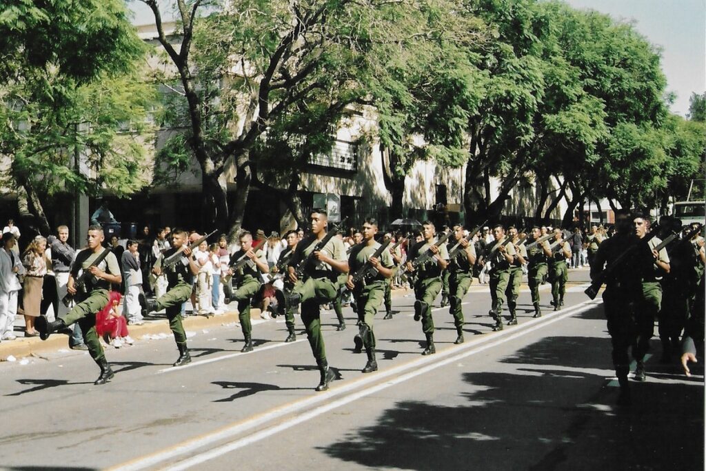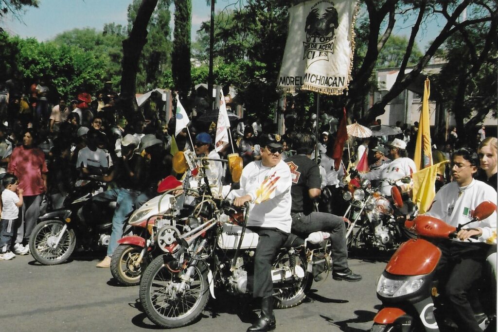 But then my earlier vision of a revolution celebrated with a pacifist zeal started to recede. A matter of paces behind the men on their Harleys, I clamped eyes on the next participants in the procession – the military had appeared on the scene. Goose stepping, machine gun gripping, jack booted khaki uniforms stomped their way down the Avenue Mader-Poiente, I longed for the Harleys to do to the military, what the cyclists had done to the judo players – line up a few of their motor bikes to see if the soldiers were really as athletic as their goose stepping made out.